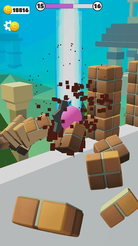 Você é uma bola rosa. Toque para pular, segure para soltar e fatiar objetos. Seja invencível.