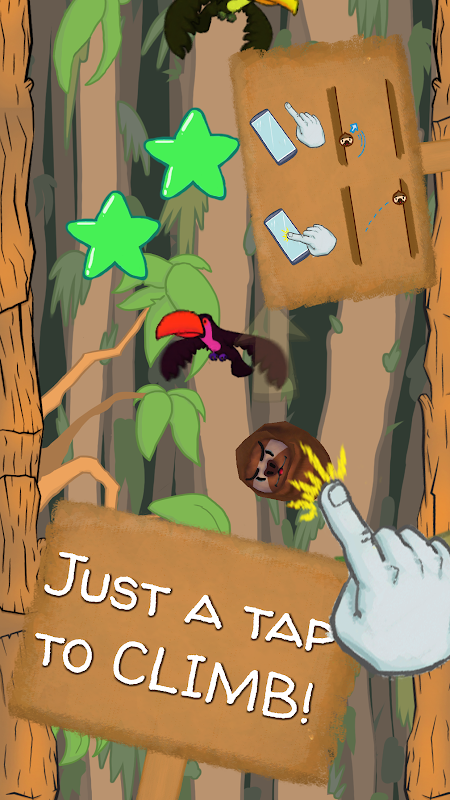 Um dia, um pequeno bicho-preguiça estava tranquilamente no chão, quando de repente ouviu-se um rosnado de um carnívoro se aproximando. Agora, com o poder do seu ‘TAP’, você vai ajudar o jovem bicho-preguiça a escalar. Ele precisa subir sem parar, desviando dos pássaros distraídos que cruzam seu caminho, e aproveitando para coletar algumas estrelas e frutas que encontrar pelo caminho – afinal, nunca é demais ter estrelas e frutas na jornada. Escale a novas alturas para escapar da perseguição da fera faminta e conquiste o trono de ferro das maiores pontuações entre todos os bichos-preguiça.