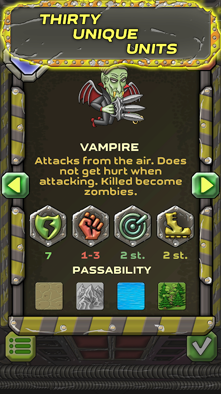A principal característica desta estratégia offline baseada em turnos é a diferença nas táticas de batalha para diferentes raças. Lidere a defesa da base de arqueiros zumbis contra monstros ou ataque as fileiras de robôs sem alma com tanques. A jogabilidade é uma reminiscência de xadrez ou damas, mas as peças não se limitam aos clássicos reis e rainhas. Em vez disso, você pode lutar e comandar as tropas de uma das sete civilizações com características únicas: humanos, alienígenas, robôs, monstros, zumbis, fuzileiros navais espaciais e atlantes
