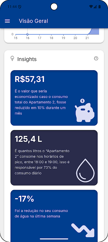 Acompanhe o fluxo de água em tempo real, diretamente do seu smartphone. Você poderá visualizar os dados de consumo, como o volume de água utilizado e a taxa de fluxo instantânea, de maneira rápida e precisa. Com essas informações em mãos, fica fácil detectar padrões e agir de forma proativa para reduzir desperdícios.