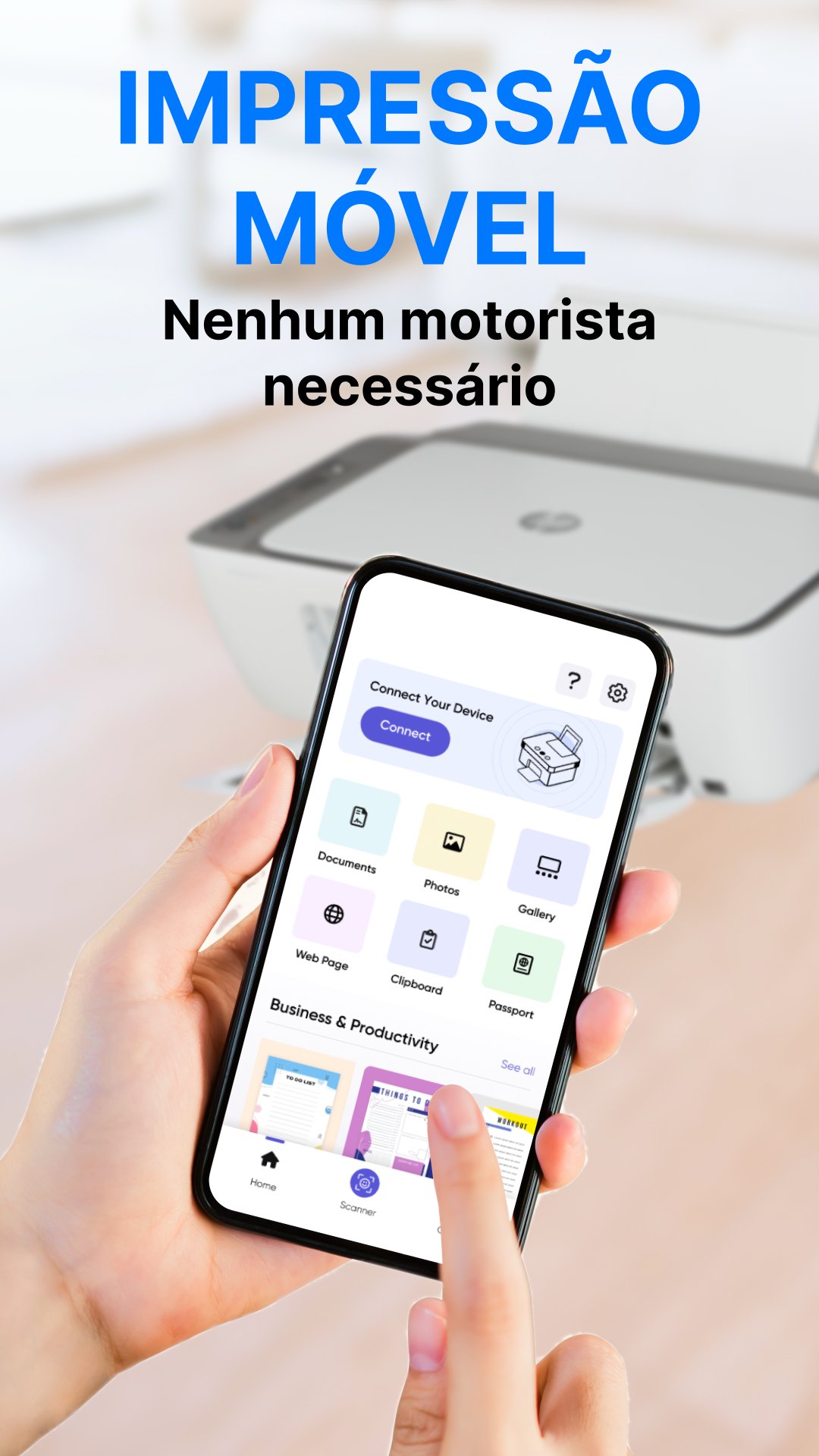 Você pode imprimir imagens, fotos, páginas da web, PDFs e documentos do Microsoft Office sem precisar baixar apps ou ferramentas adicionais, em praticamente qualquer impressora via Wi-Fi, Bluetooth ou USB.