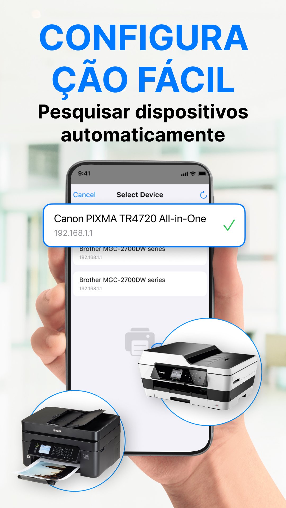 • Localiza múltiplas impressoras automaticamente