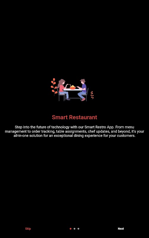 Entre no futuro da tecnologia com nosso aplicativo Smart Restro (suporte apenas para dispositivos tablet). Do gerenciamento de menu ao rastreamento de pedidos, atribuições de mesas, atualizações de chefs e muito mais, é a sua solução completa para uma experiência gastronômica excepcional para seus clientes.