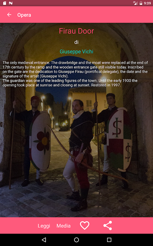 Thanks to the interaction with the app and with iBeacons you can receive contents about each structure affiliated with SMART in a totally automatic way, without interacting directly with the artworks. In order to receive notifications containing informations about all the artworks next you, the app is simply needed to be running. Each notification can be consulted again through history and each content can be saved as favorite.