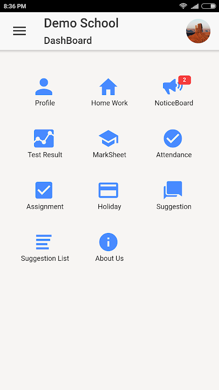 Pais podem ver a lição de casa, Notice, marksheet, resultado de teste, Assignment, férias e atendimento.