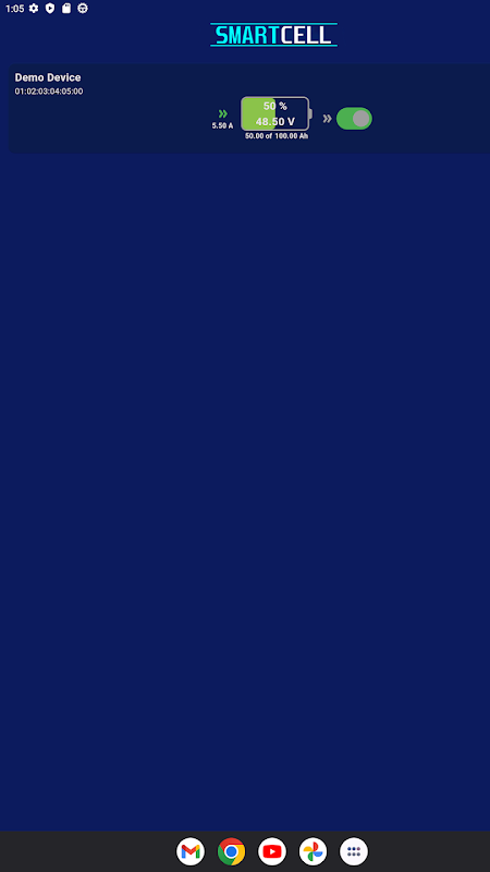 SmartCell™️ é um aplicativo móvel proprietário do fabricante de baterias SmartCell™️. Ele permitirá que você conecte seu smartphone Android às baterias de lítio SmartCell™️ e monitore o desempenho da bateria on-line via Bluetooth (tensão em tempo real, corrente, capacidade restante, tempo restante e temperatura da bateria). O que isso lhe dá é - PAZ DE MENTE! Você está no controle.