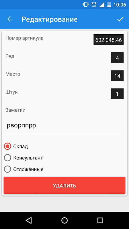 Наше приложение избавит вас от необходимости вручную записывать артикул товара и информацию о его расположении на складе. Для того, чтобы добавить интересующий товар в список, просто наведите камеру вашего телефона на его этикетку!*