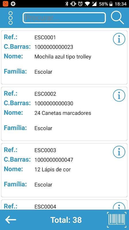 Aplicação permite efetuar consultas de informação sobre o produto, online e offline, como preços, stocks (inclusive por cor e tamanho ou propriedade).