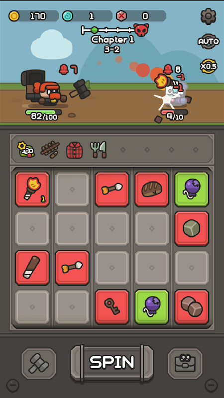 Melhore! – Derrote monstros para ganhar artefatos e moedas! Aumente suas armas e slots!