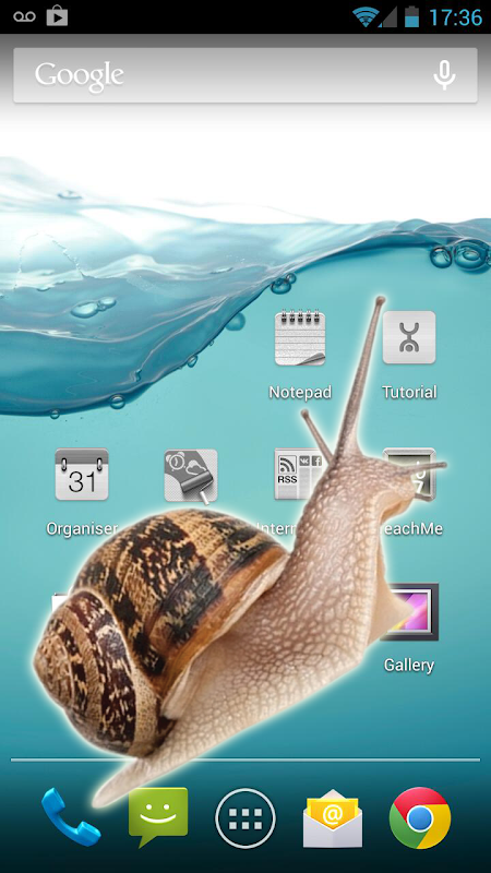Caracol horrível está se movendo na tela do seu telefone! Assuste seus filhos e amigos! Coloque um grande caracol dentro do seu telefone e mostre para todos! Um animal se moverá de uma borda da tela para outra. Muitas pessoas podem acreditar que um real slimy está rastejando na tela de seus telefones. Uma animação de um caracol será exibida sempre no topo de outros aplicativos.