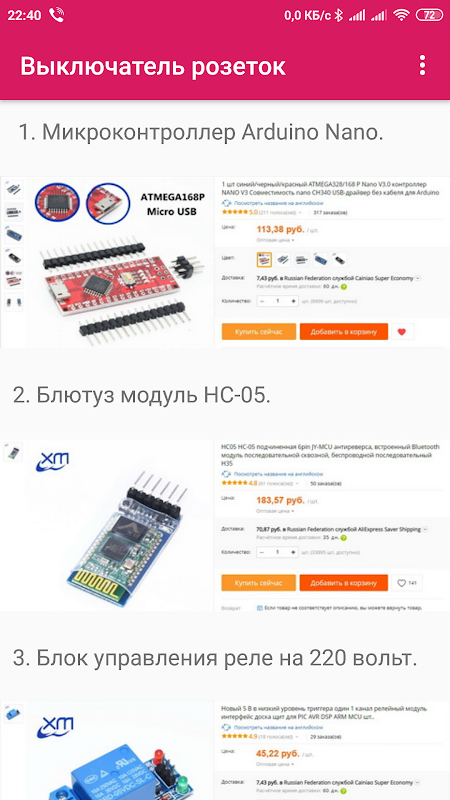 Программа предназначена для управления двумя розетками. А точнее: подача 220 вольт к ним через реле. Применение найти можно самое разнообразное: от включения телевизора, освещения аквариума, света в комнате, открытие ворот в гараже, поднятие шлагбаума, скрытый замок, сигнализация и т.д. Короче все то, что хотелось бы включить дистанционно на расстоянии 10-15 метров, т.е. в зоне действия блютуз. В инструкции есть описание как собрать исполнительное устройство на микроконтроллере Arduino.