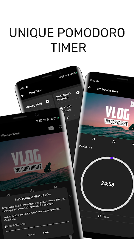 - Você pode personalizar facilmente seus vídeos pomodoro. Como adicionar ou excluir vídeos.