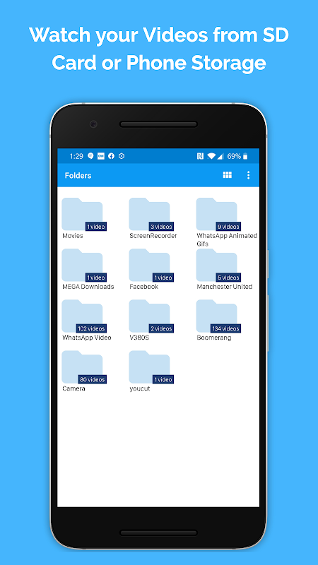 - Assista a programas de TV, filmes e todos os outros vídeos do seu cartão SD ou armazenamento do telefone.