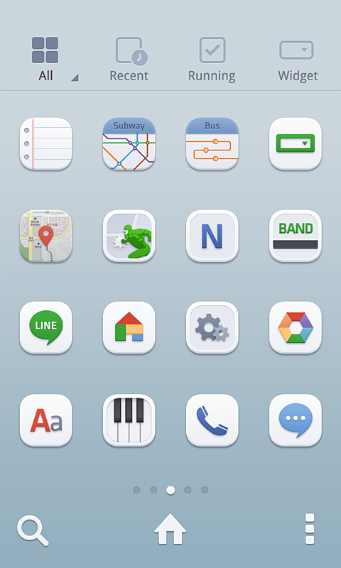 - Open the launcher menu by swiping the home screen upwards, select the [Theme] menu, then select and apply the theme of your choice.