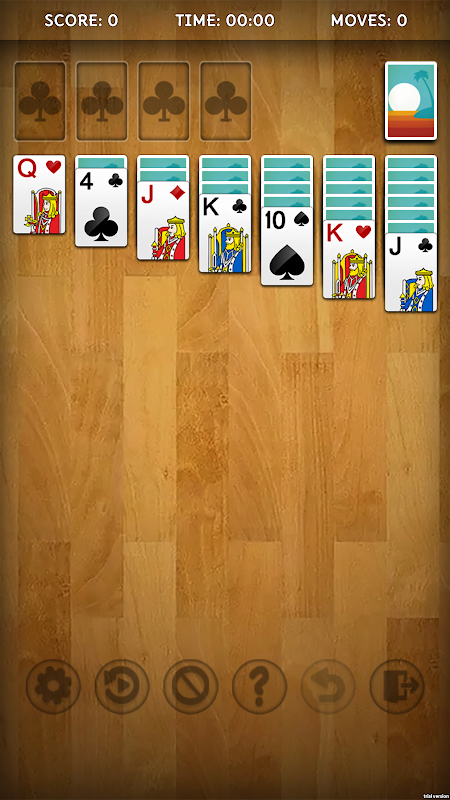 Este é Klondike Solitaire. Uma das variantes mais populares do jogo de paciência. Inclui 21 grandes versos de cartas de paciência, 4 frentes de cartas de paciência e 9 belos planos de fundo.