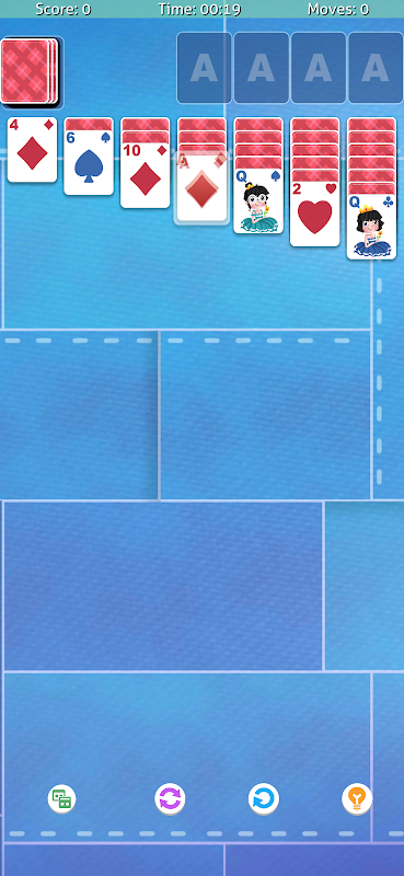 In the upper-left corner are four free cells, where you temporarily store cards during play.