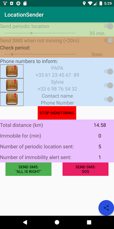 ✅ Compartilhamento automático de localização: Envia periodicamente sua posição GPS via SMS.