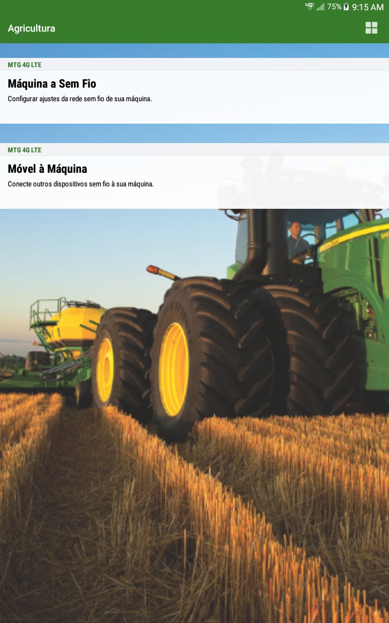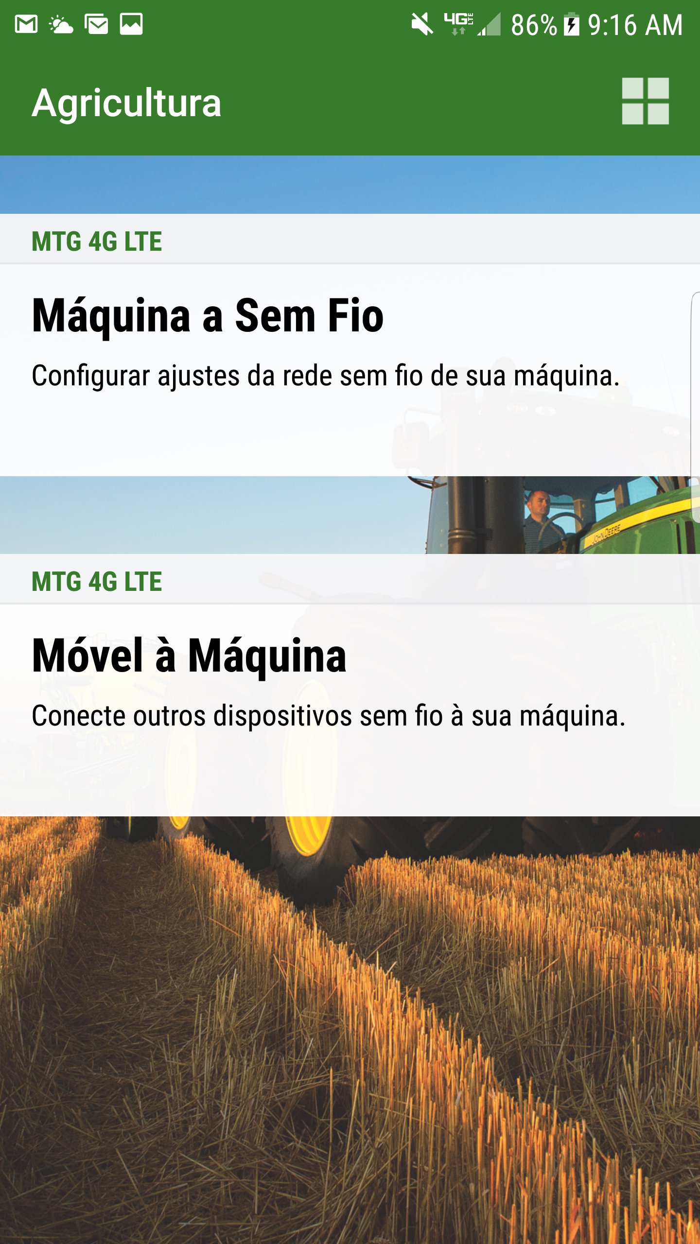 O SolutionsPlus da John Deere é sua solução para gerenciar as ofertas de produtos de tecnologia da John Deere. O aplicativo SolutionsPlus é usado para oferecer suporte, configurar e ativar as funcionalidades de produtos de tecnologia de precisão selecionados da John Deere para os setores agrícola, de construção e florestal. Dependendo do produto de tecnologia, o aplicativo SolutionsPlus pode ser usado para atividades como conexão do MTG 4G LTE a uma rede sem fio.