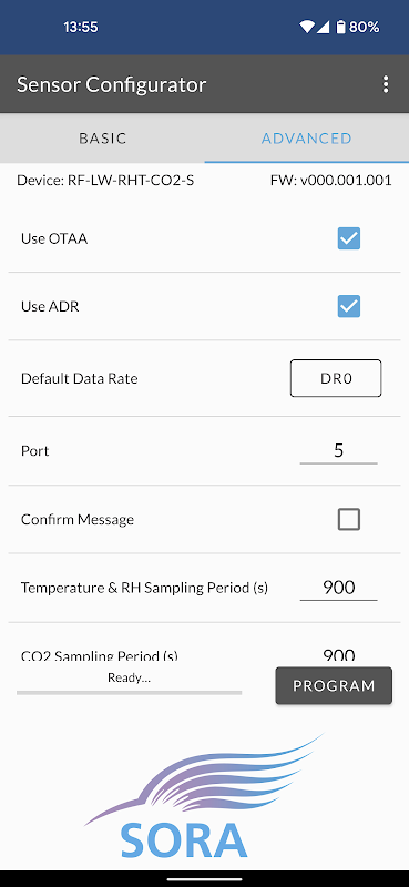 O Configurador de Sensor SORA permite que você configure seus sensores Sontay SORA.