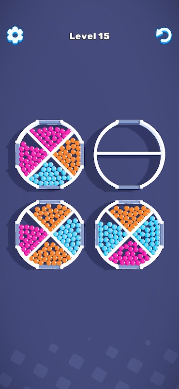 Resolva o quebra-cabeça girando os anéis e classificando as bolas da mesma cor.