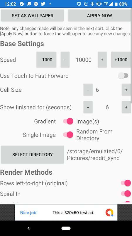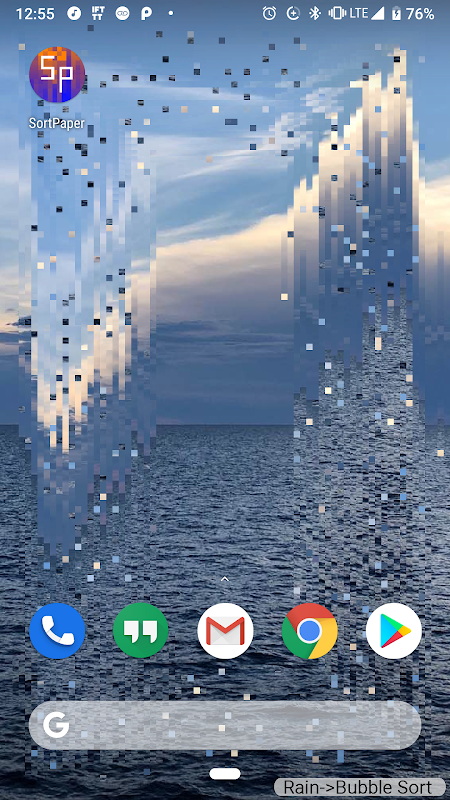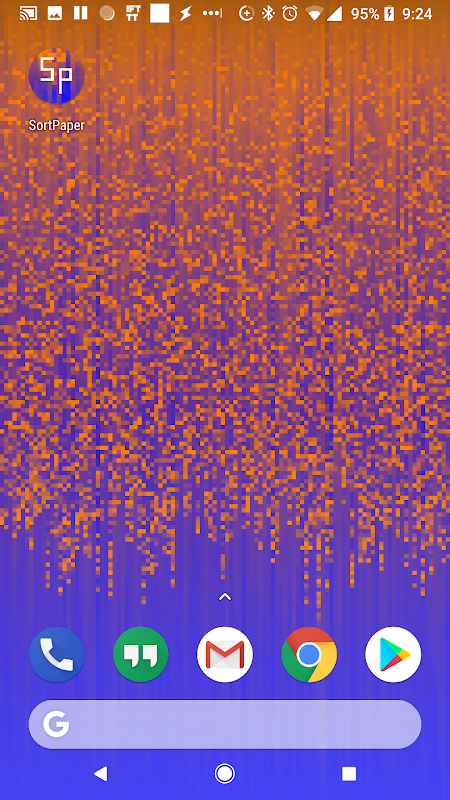 Assista a uma imagem embaralhada ou a um gradiente de cores ser classificado usando algoritmos de classificação aleatória na tela inicial. Você pode personalizar as cores ou a imagem usada, o tamanho das células que estão sendo classificadas, a velocidade e até quais algoritmos usar.