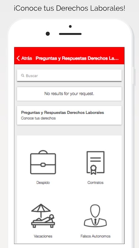 - Sección de Preguntas y Respuestas sobre los Derechos Laborales: esto hará que conozcas tus derechos ya sea referente a Despidos, Contratos, Vacaciones, Falsos Autónomos, Accidentes como otras cuestiones que se pueden presentar.