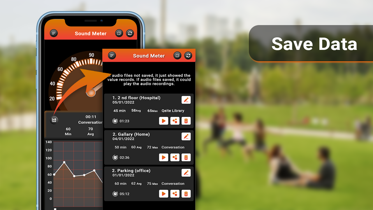 ▪ Este é um aplicativo inteligente Sound Meter - Decibel Level que usa o microfone do seu telefone para medir o volume de áudio em decibéis (dB) e exibi-lo em um gráfico de linha do tempo. Você pode transportar o medidor de decibéis a qualquer hora em qualquer lugar para fornecer referência de detecção de ruído e fornecerá detecção de informações de localização.