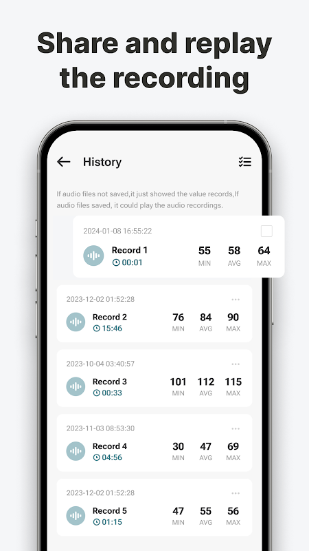 3. Para evitar perdas desnecessárias, salve sua gravação antes de sair do aplicativo de medidor de som