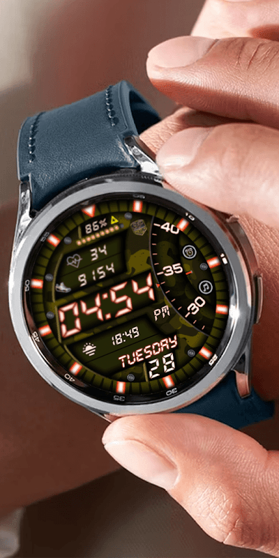 Watchface digital em estilo militar.