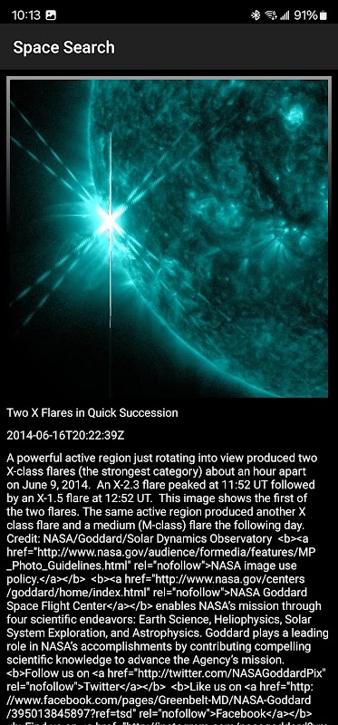 Um aplicativo que permite pesquisar sobre o espaço.