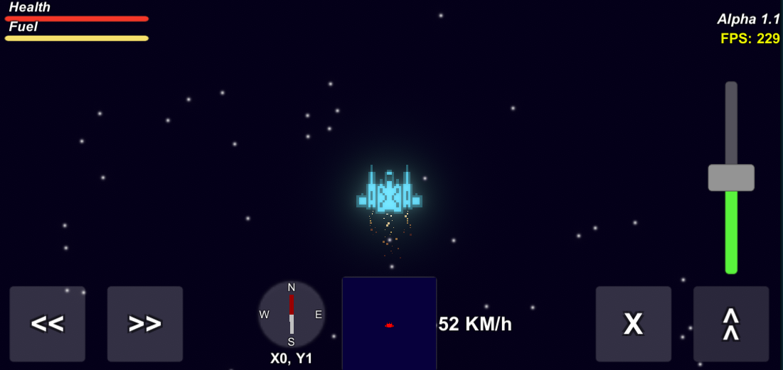 Explore o espaço cheio de planetas, pouse em planetas e atire pedras para ganhar saúde ou combustível