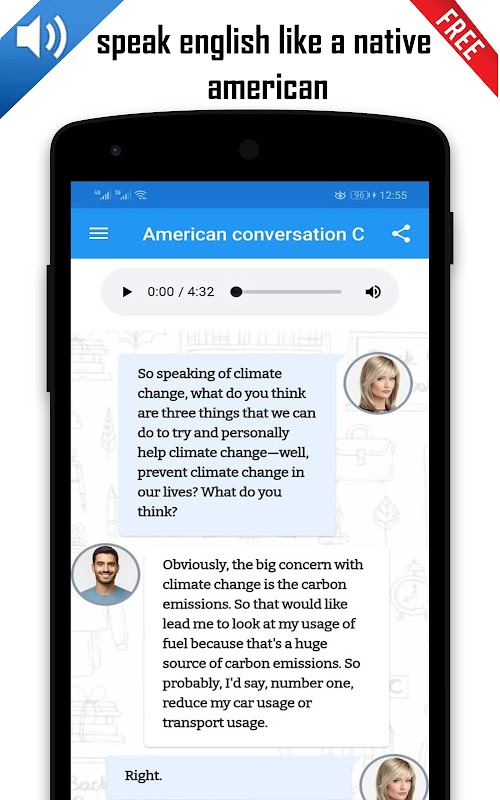 Estude conversas reais em inglês americano. Aprenda sobre as categorias: fale inglês como um nativo americano. Iniciantes - Intermediário - Avançado.