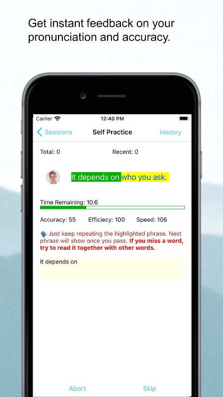 O aplicativo SpeakNative é totalmente GRATUITO! Tudo que você precisa fazer é falar mais e melhorar com base no feedback. A prática leva à perfeição!