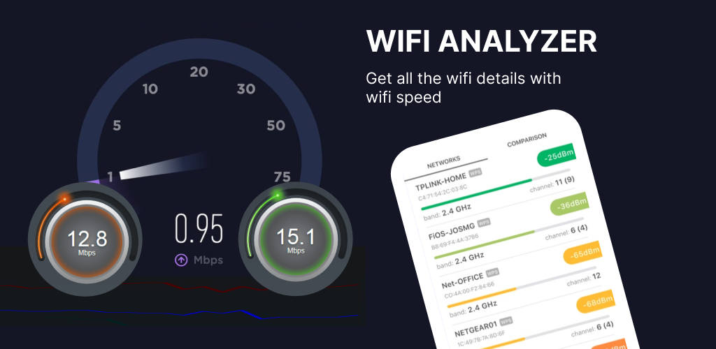Este analisador wifi e aplicativo de teste de velocidade irá completar o seu desejo. Usando o teste de velocidade e o Wifi Analyzer, você pode otimizar as redes wifi testando o wifi e o wifi booster, a intensidade do sinal, verificando o teste de velocidade wifi, digitalizando, a intensidade do sinal wifi e também mostrando os canais menos lotados, este teste de velocidade e roteador wps/wifi ajuda você a mostre todos os canais wi-fi ao seu redor. O analisador Wifi e o aplicativo mestre de teste de velocidade aumentam o desempenho da rede analisando e monitorando suas redes WiFi.