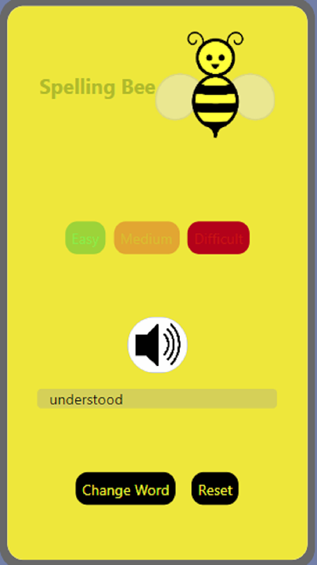Este aplicativo permitirá que outras pessoas joguem concurso de ortografia a qualquer hora e em qualquer lugar. Primeiro escolha uma dificuldade de soletrar palavras. Pressione o botão do alto-falante para ouvir uma palavra e basta digitar essa palavra na entrada de texto e ver se você escreveu certo ou errado. por último, você também pode alterar a palavra que deseja soletrar e também redefinir todo o aplicativo e começar do início.
