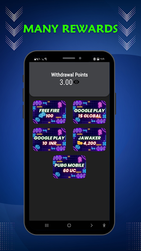 Para saques, oferecemos diversos jogos e recompensas, como vales-presente, diamantes do Free Fire e Jawaker.