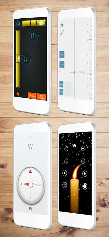 - Coloque o smartphone sobre paredes, prateleiras ou outros objetos e verifique as leituras de ângulo exibidas na tela.