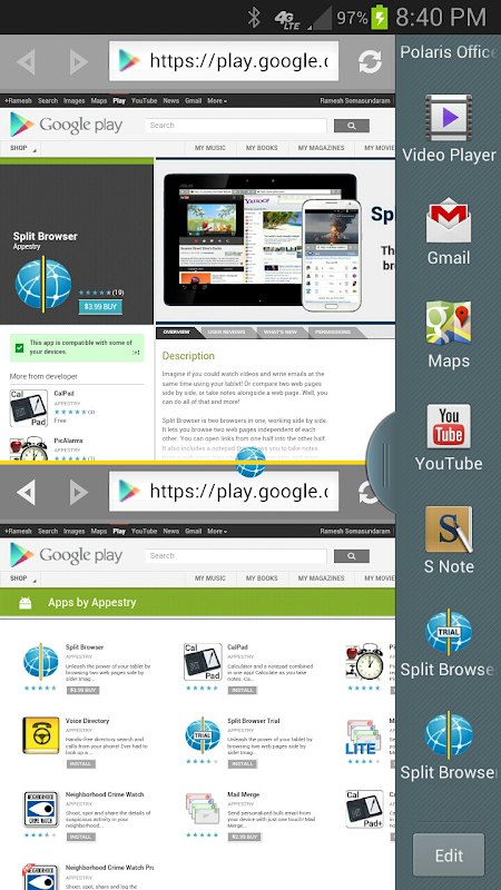 1/14/16 - SAMSUNG UPDATE: Split Browser agora funciona em mais recentes dispositivos Samsung em modo multi-janela.