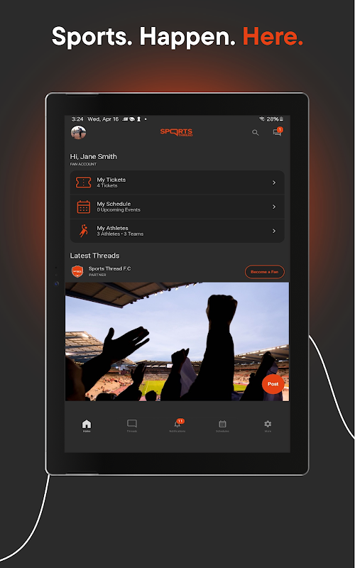 Acompanhe a escalação do seu time, comunique-se pelo chat do time, receba notificações de eventos e verifique a programação de jogos no Sports Thread.