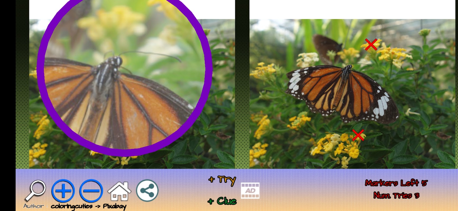 Você pode usar a lupa virtual para ter uma experiência melhor e encontrar as diferenças entre as imagens mais rapidamente.