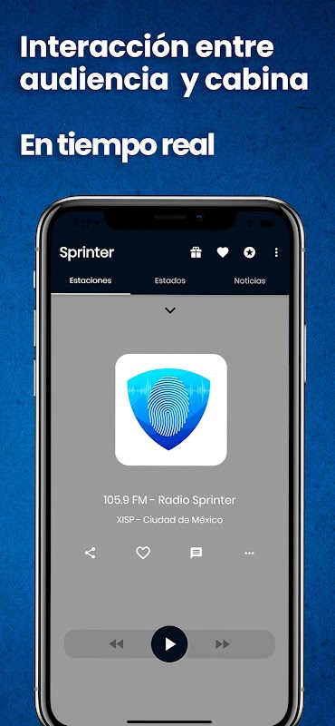 Não basta reproduzir streaming, o Sprinter é um aplicativo totalmente dinâmico. Feed de notícias, player moderno e fácil de usar, bate-papo em tempo real com cockpit, várias estações de várias cidades, notificações inteligentes, redes sociais, eventos da cidade, jogos, podcasts, música top, previsão do tempo e muitos outros recursos. Um aplicativo de rádio 100% interativo e único.