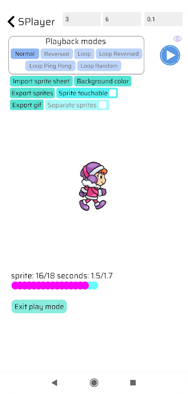 O Sprite Animation Cutter possui 6 modos de reprodução: