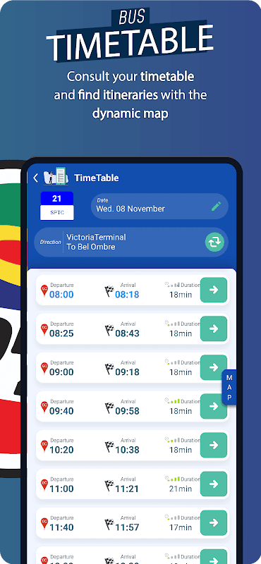 • Planeje sua viagem de ônibus usando a pesquisa de itinerário.