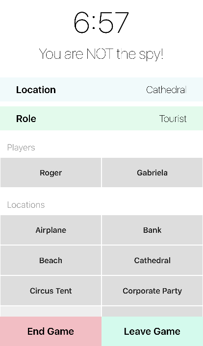 Best played with friends. Get together in a game and try to determine who the spy is from your roles and locations by asking questions, such as: