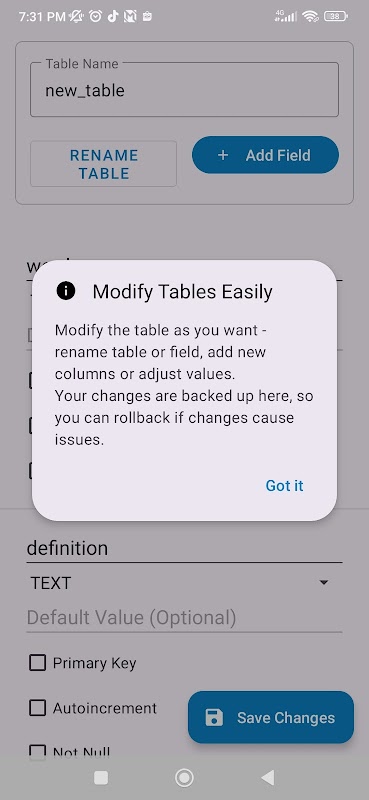 Em caso de erros ou problemas de integridade, você pode facilmente reverter as alterações, sem precisar se preocupar em danificar seu banco de dados. Tudo permanece seguro e sob controle.