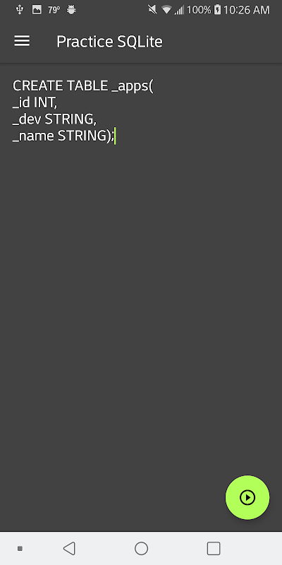 Practice SQLite syntax, minimal app for querying. Syntax error detection