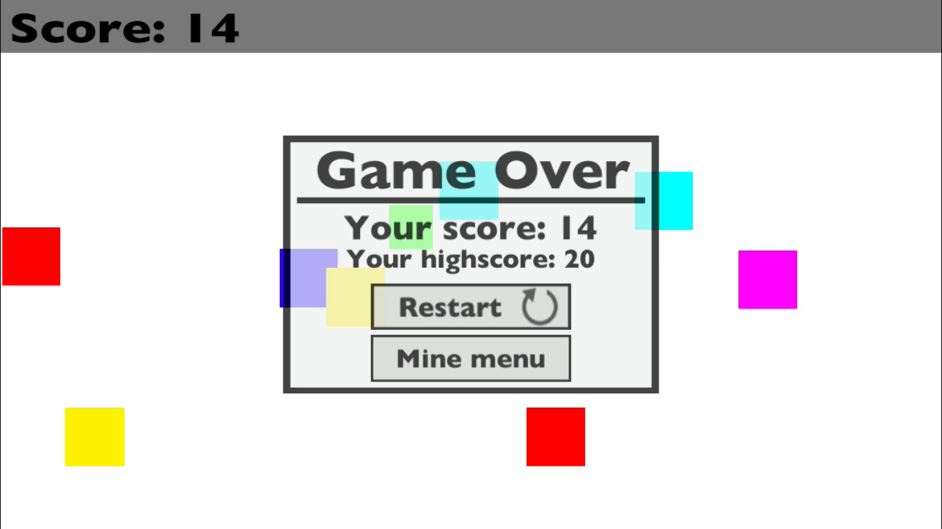 2) In Lives mode you must avoid black square enemies and collect red squares that give you +1 live and also every two seconds you get score.