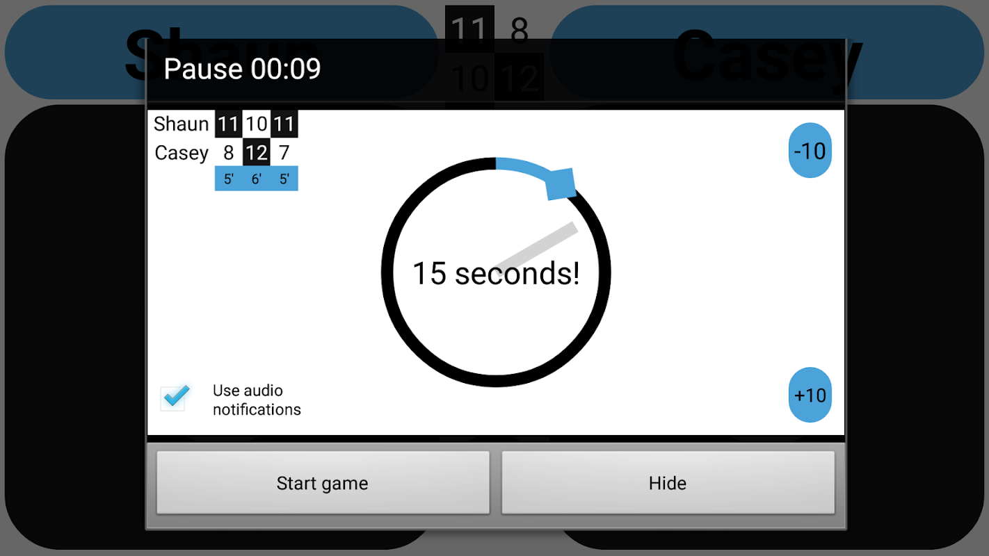 &touro; possibilidade de usar temporizadores de 'aquecimento' e 'entre jogos' (com notificações opcionais de som/vibração)