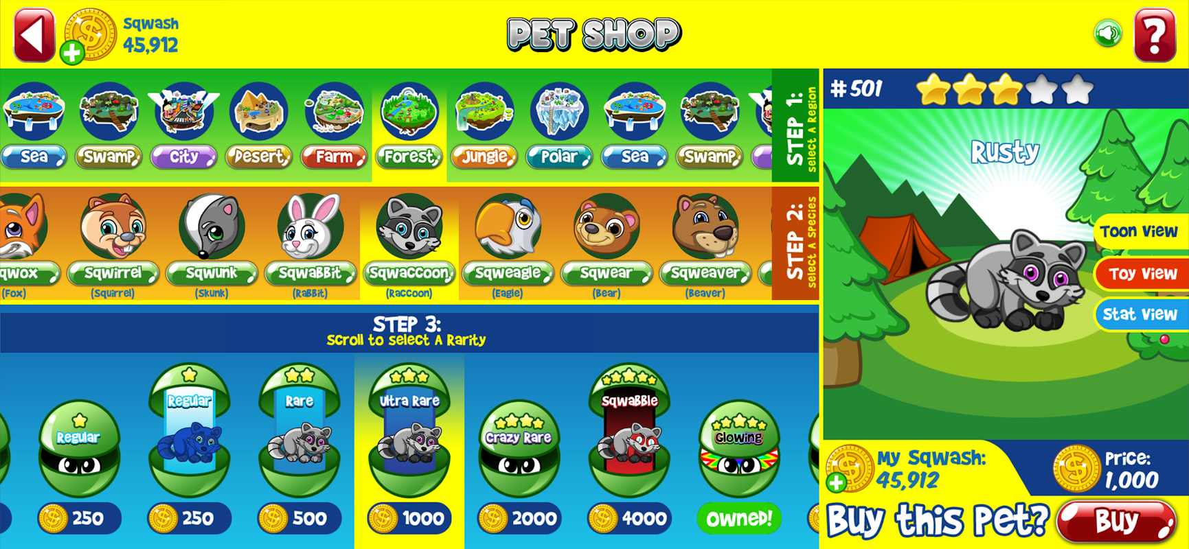 Mil e mil pets disponíveis para colecionar estão prontos para encontrá-lo em 10 regiões de SqwishLand.