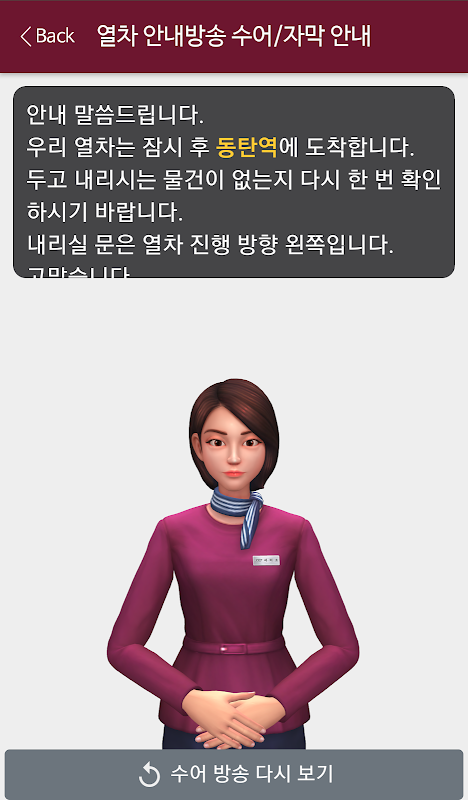 1. 열차내 음성 안내방송의 아바타 수어 및 자막 안내